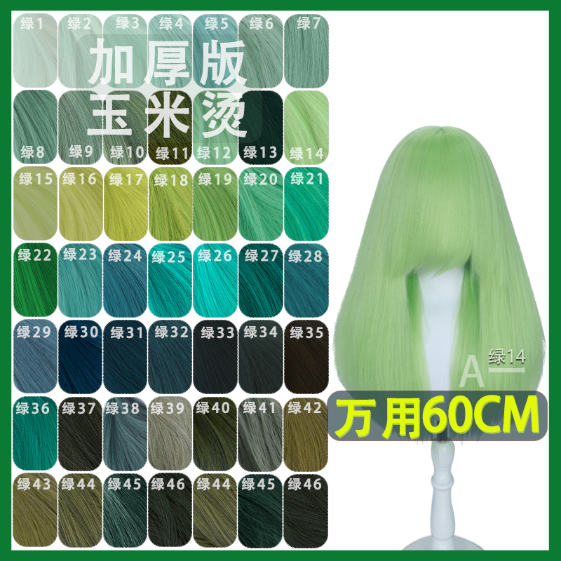 曼柒殿阁黄绿青草绿深浅黑嫩绿葱绿蓝绿色万用cos倒毛假发73-96色