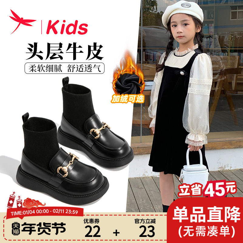 红蜻蜓真皮女童鞋儿童马丁短靴子2025新款秋冬季袜靴宝宝皮靴公主