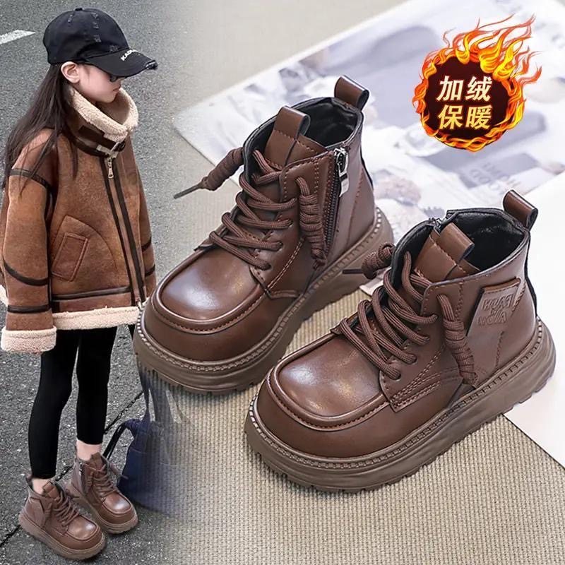 - 儿童马丁靴女冬 加绒