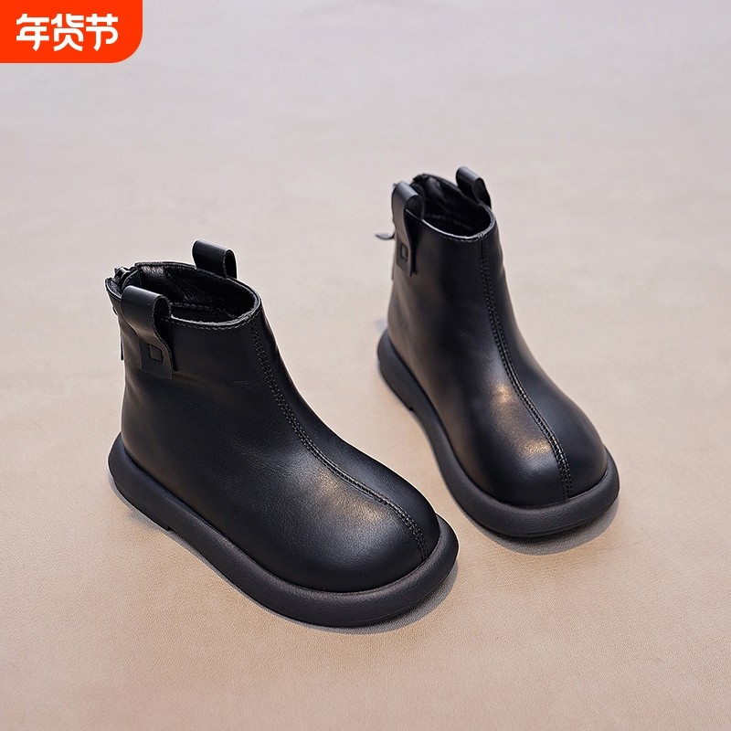 真皮女童靴子2025秋冬新款儿童短靴加绒马丁靴宝宝皮靴百搭大棉靴