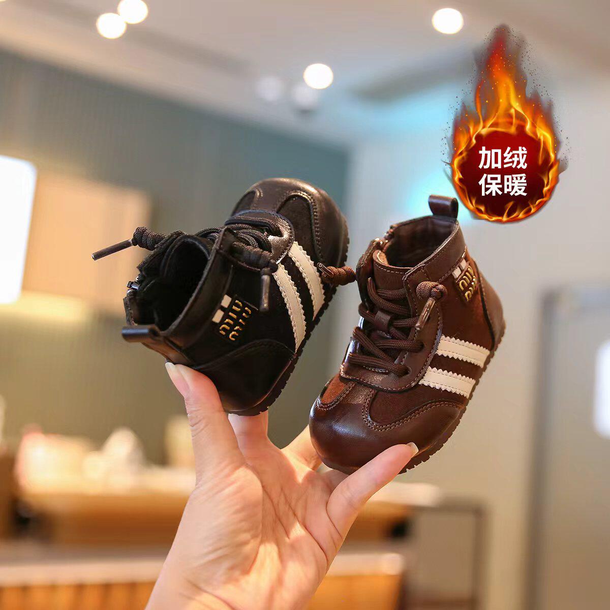 小步点宝宝马丁靴儿童靴子冬鞋加绒棉靴男童鞋子小童短靴女童皮靴