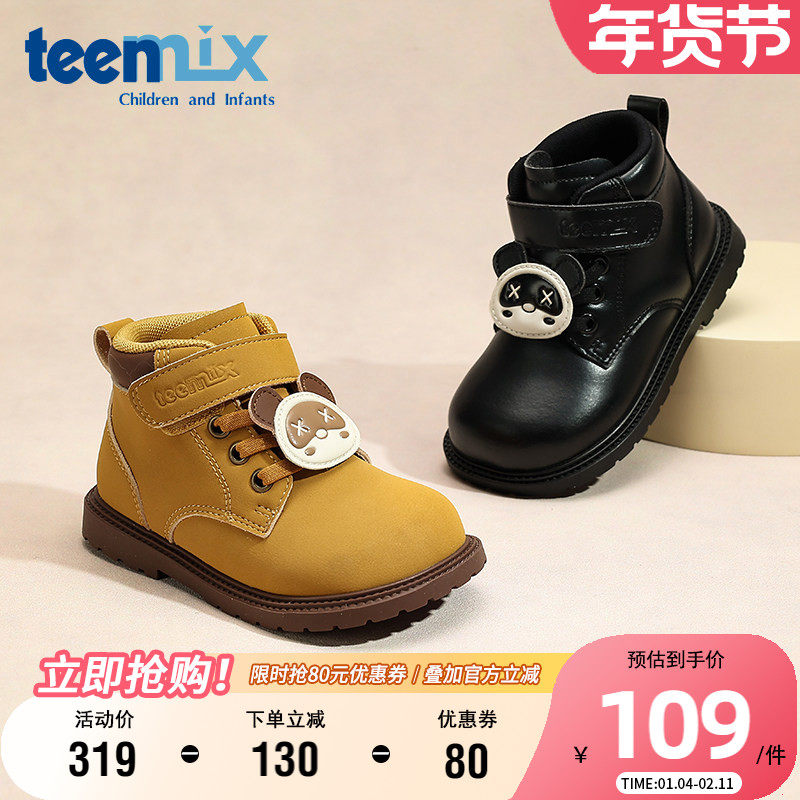 天美意童鞋儿童马丁靴秋冬季单内里女孩小公主短靴男童宝宝皮靴子