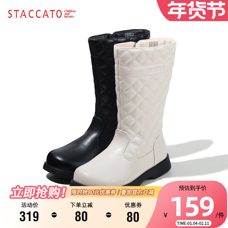 思加图童鞋冬季儿童时装靴舒适保暖宝宝皮靴女童英伦风时尚长筒靴