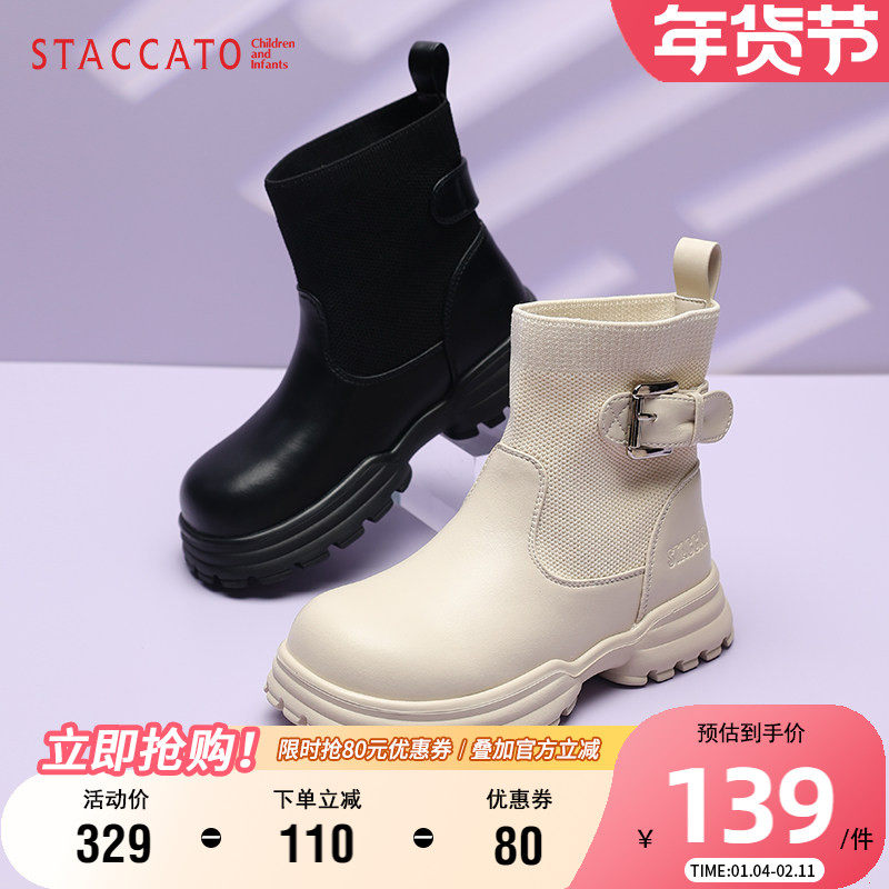 思加图童鞋小女孩时装靴秋季女童弹力袜靴软底宝宝皮靴时尚公主靴
