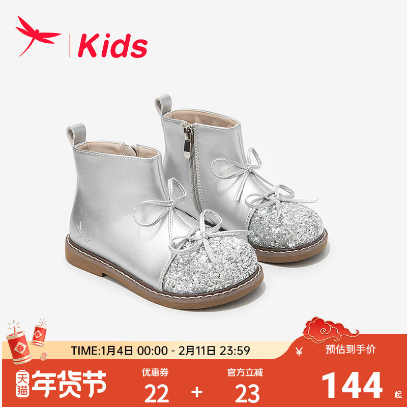 红蜻蜓女童鞋子儿童公主马丁小短靴子2025新款冬加绒宝宝皮靴洋气