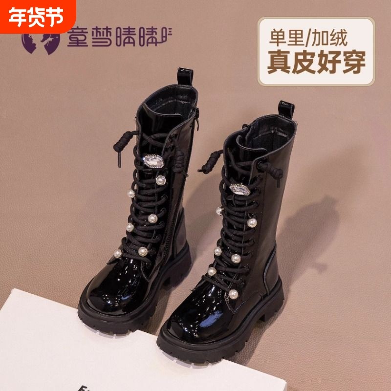 女童靴子秋季长筒靴2026儿童鞋长靴马丁靴女宝宝皮靴加绒高筒真皮