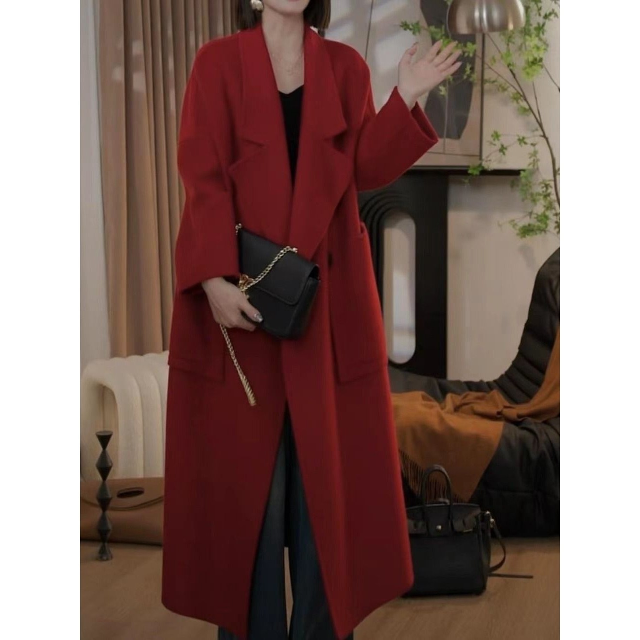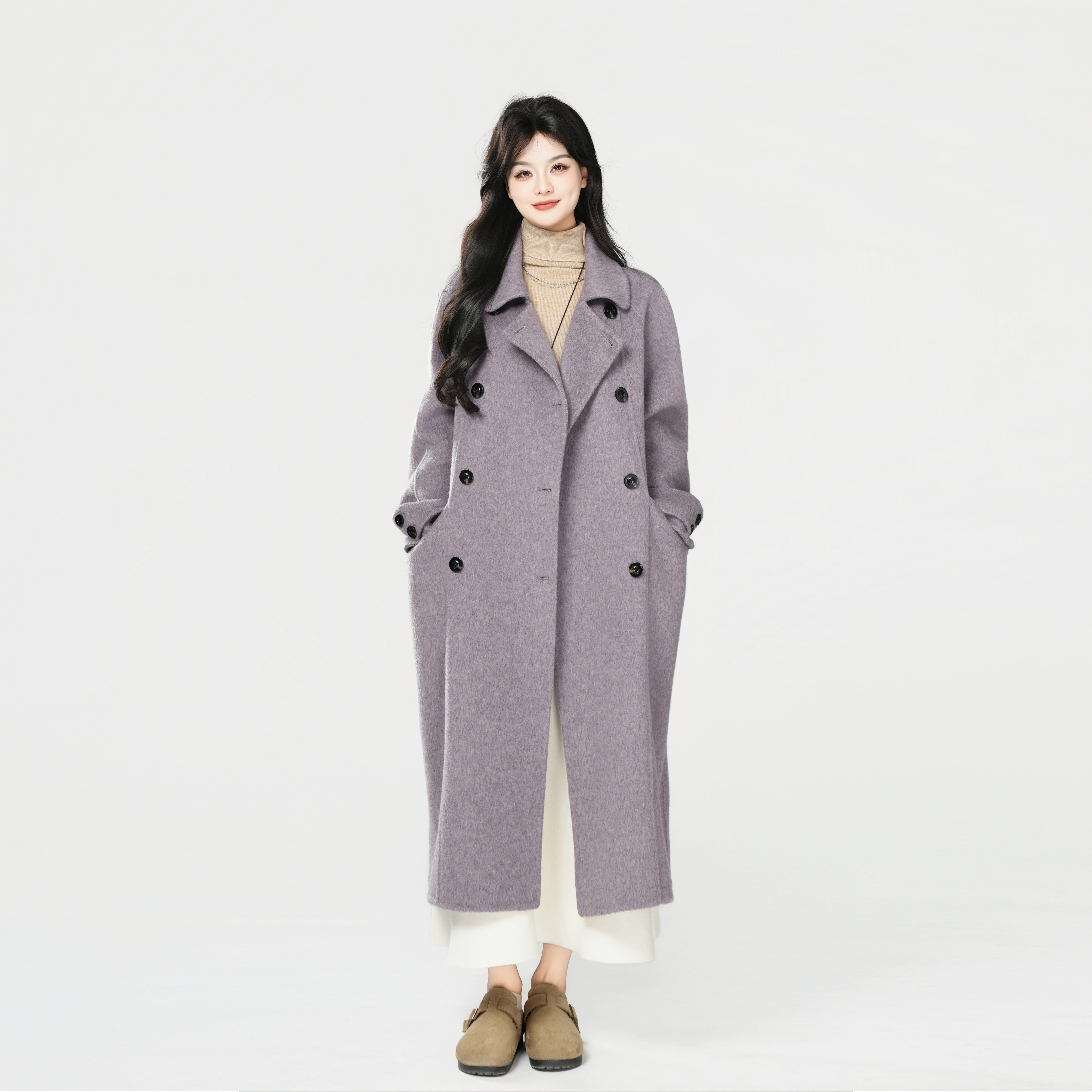 - 双面绒羊绒大衣女