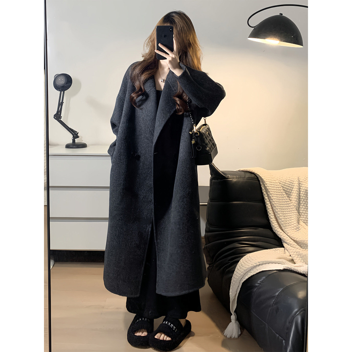 - 毛呢大衣女 中长款黑色
