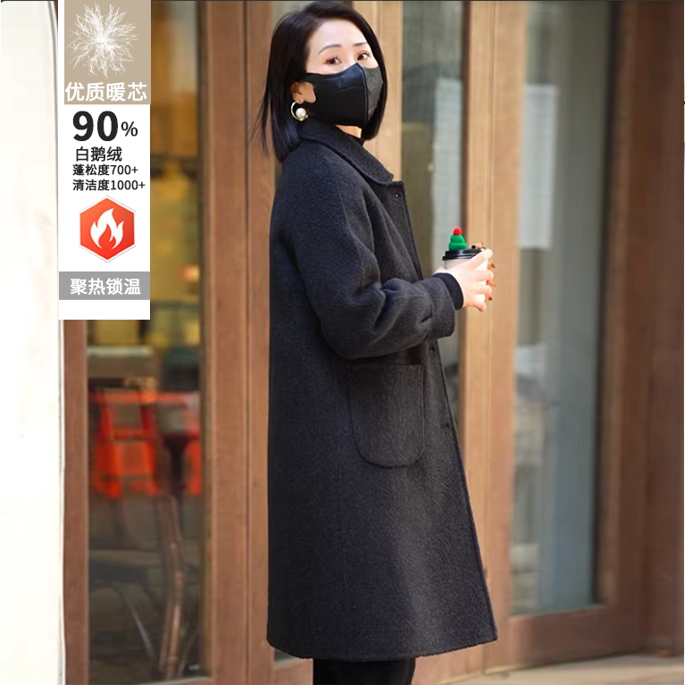 2025秋冬新款可拆卸白鹅绒内胆时尚气质羊毛大衣韩版羽绒服双面呢