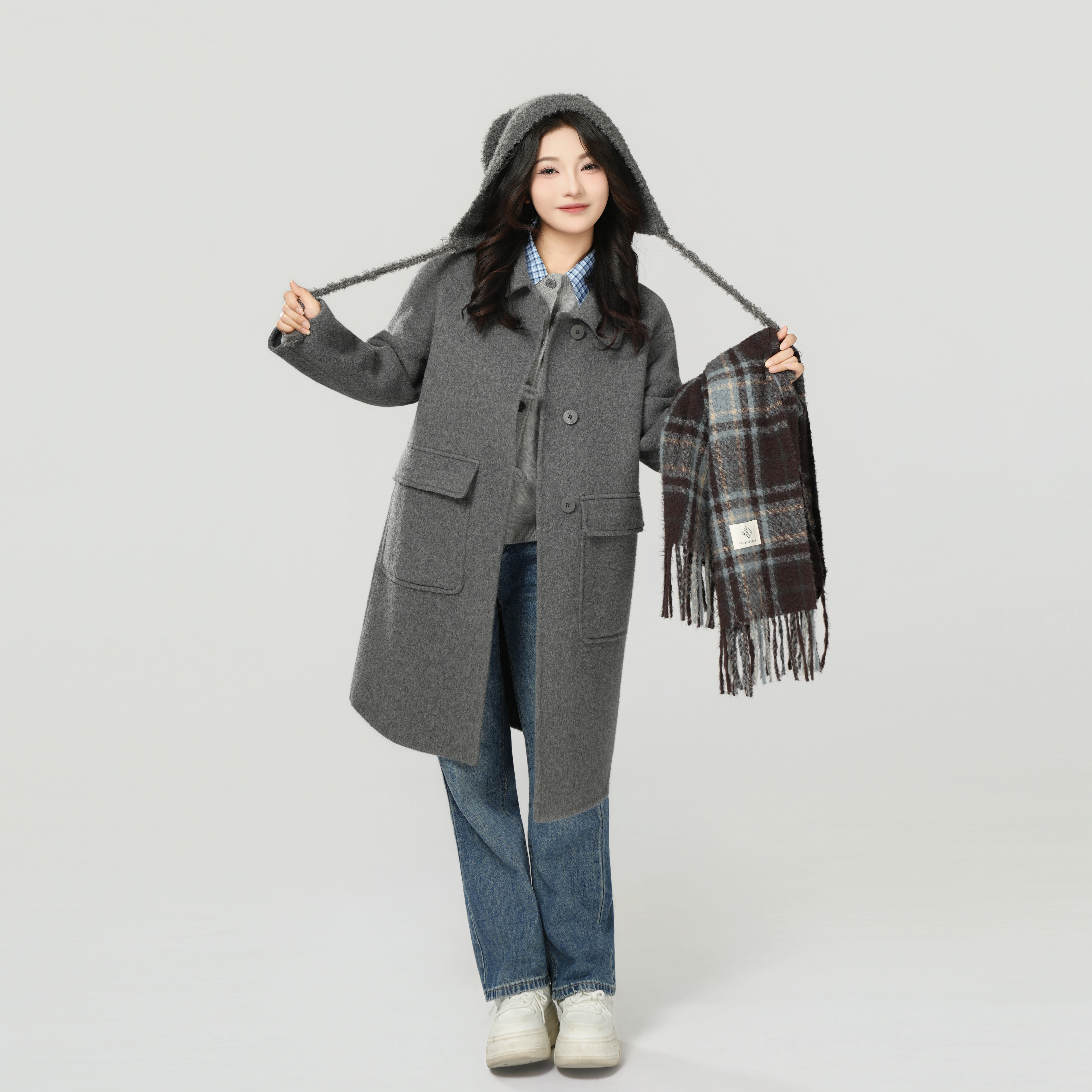 - 连帽羊毛大衣