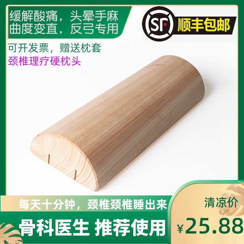 木头颈椎修复专用枕头护颈椎助睡眠治疗枕圆柱枕头硬枕牵引圆枕头