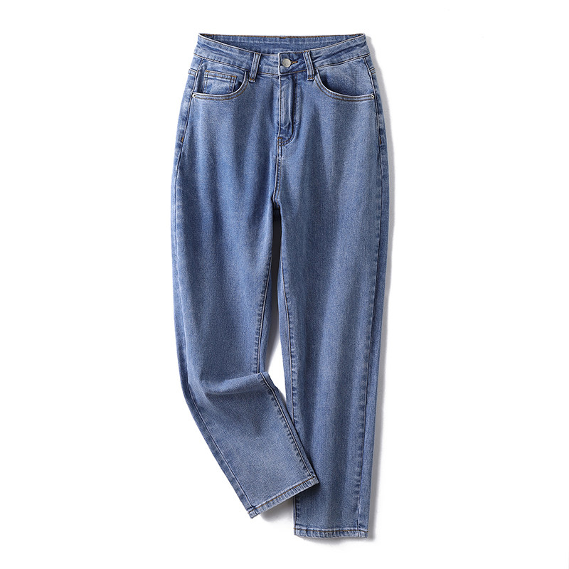 加绒大码宽松牛仔裤女高腰胖mm松紧带韩版学生秋百搭显瘦长裤子