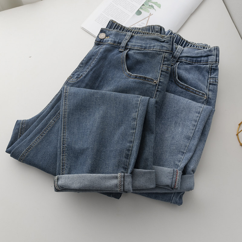 100-200斤 薄软天丝胖mm大码宽松牛仔裤八分裤松紧腰休闲裤子女夏