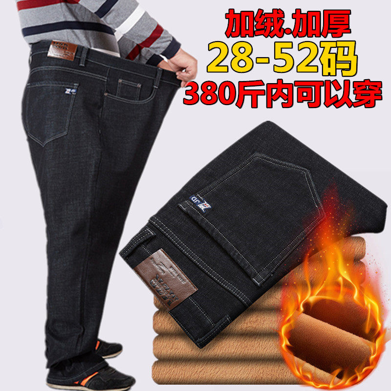 特大码宽松牛仔裤男士加肥加大码胖子加绒加厚肥佬裤直筒高腰长裤