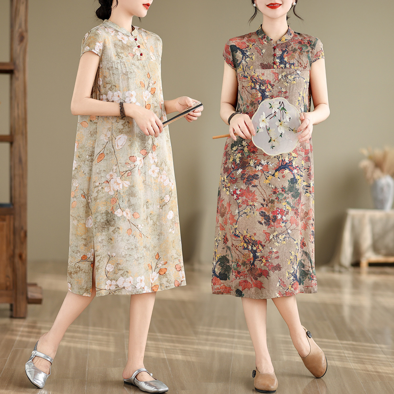 夏装复古文艺中式改良旗袍宽松中长款连衣裙女中长款百搭显瘦潮款