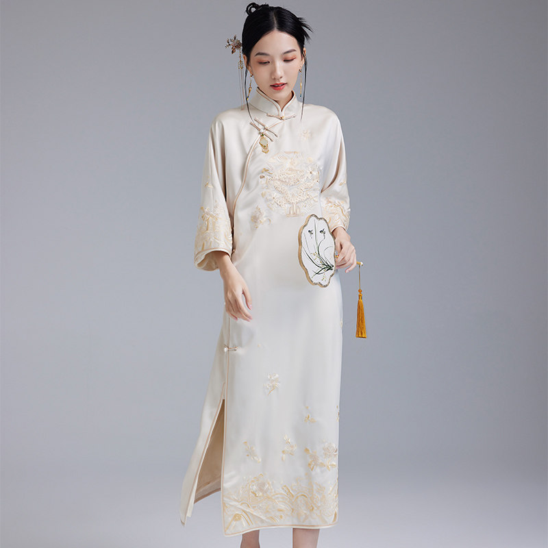 新式旗袍改良版连衣裙女长款气质年轻款宽松复古刺绣中国风女装春