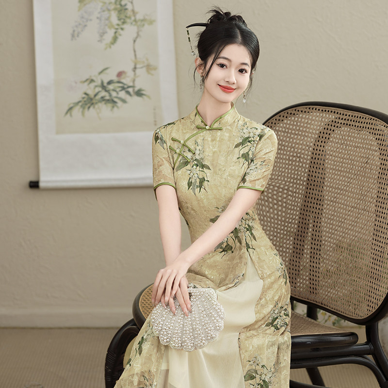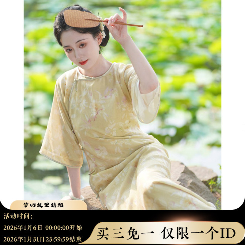 旗袍2025年夏季新款女改良黄色连衣裙夏天旗袍小个子宽松低领气质
