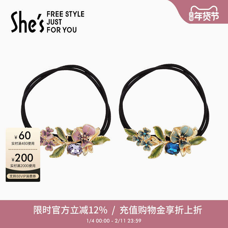 Cercoo/奢蔻双笙花系列发绳发圈扎马尾头绳 水钻头饰饰品头花发饰