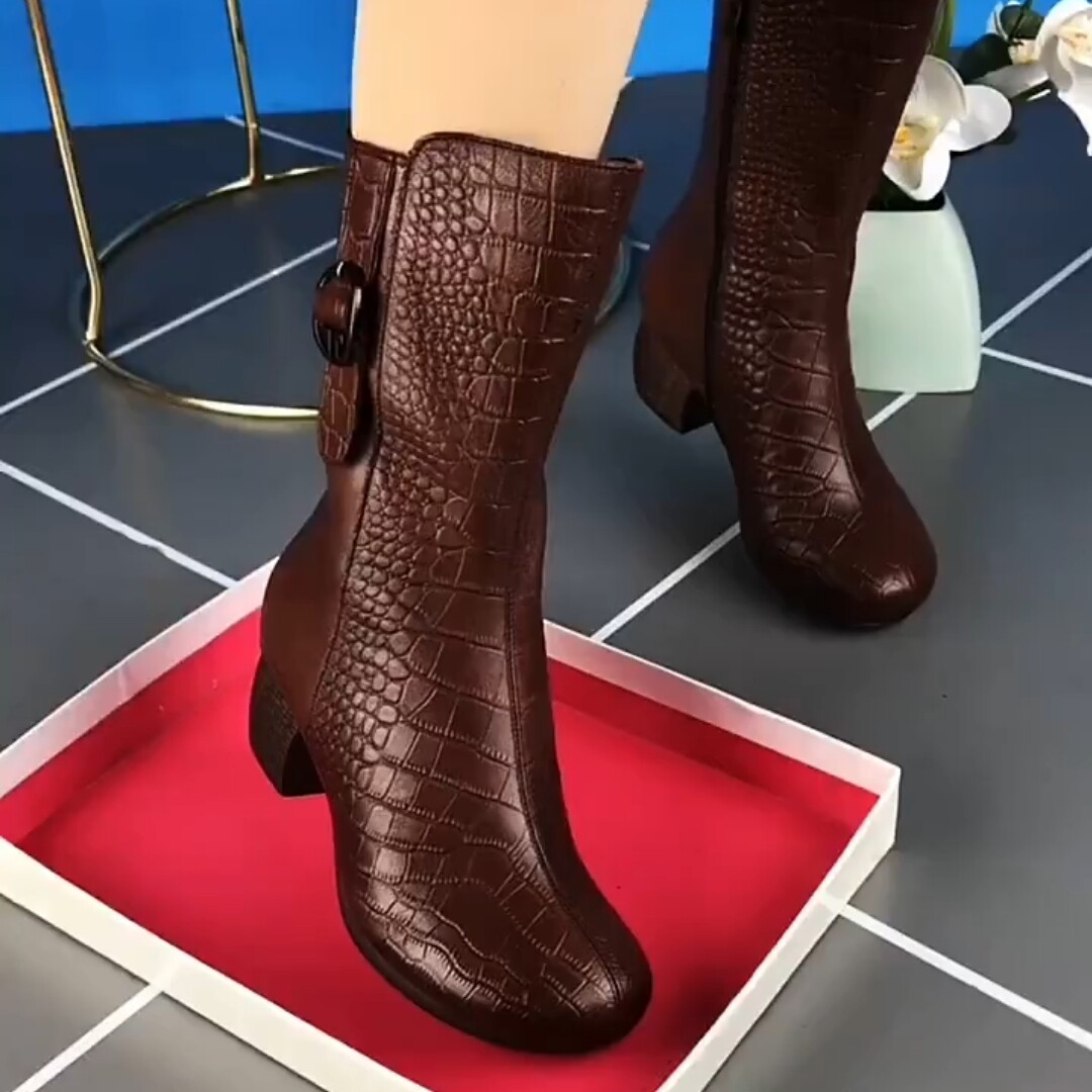 中筒靴女真皮2025年秋冬新款民族风复古短靴粗跟马丁靴中跟妈妈鞋
