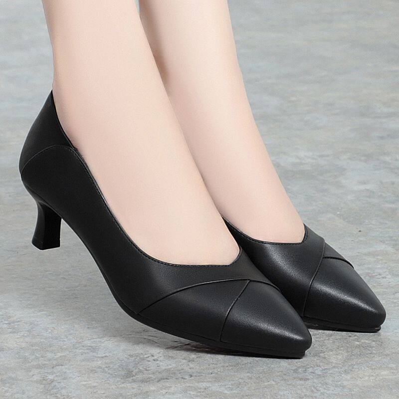 高跟单鞋女夏季软皮软底2021春夏新款女鞋中年女式皮鞋中跟妈妈鞋