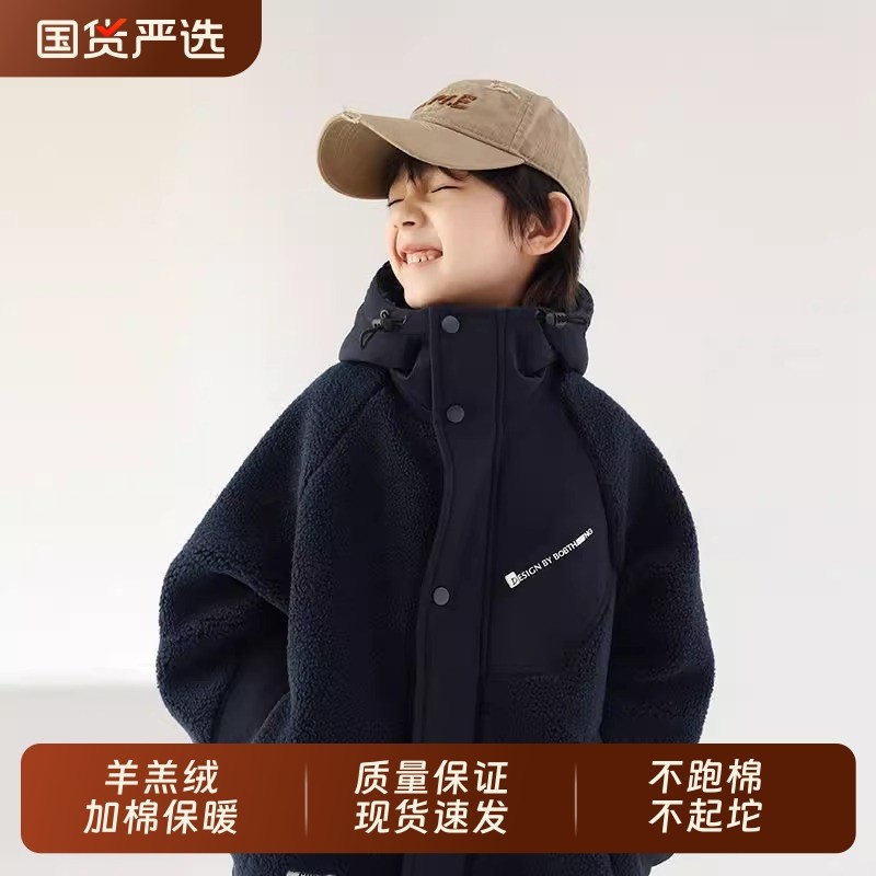 男童加绒棉衣2024新款冬季加厚羽绒棉服上衣保暖外套连帽派克棉袄