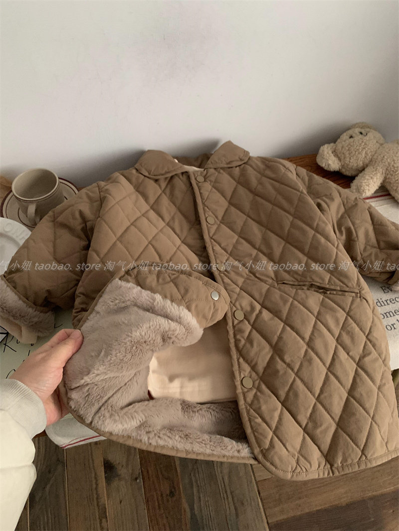 断码清仓男女童棉服冬装韩版宝宝棉袄中长款夹棉外套加绒美拉德风