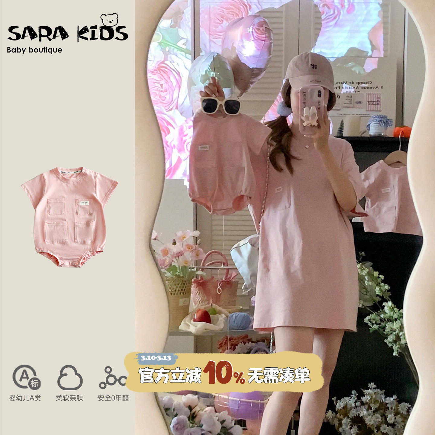 sarakids亲子装夏天高级感母子母女装一家三四口衣服新款宝宝夏装