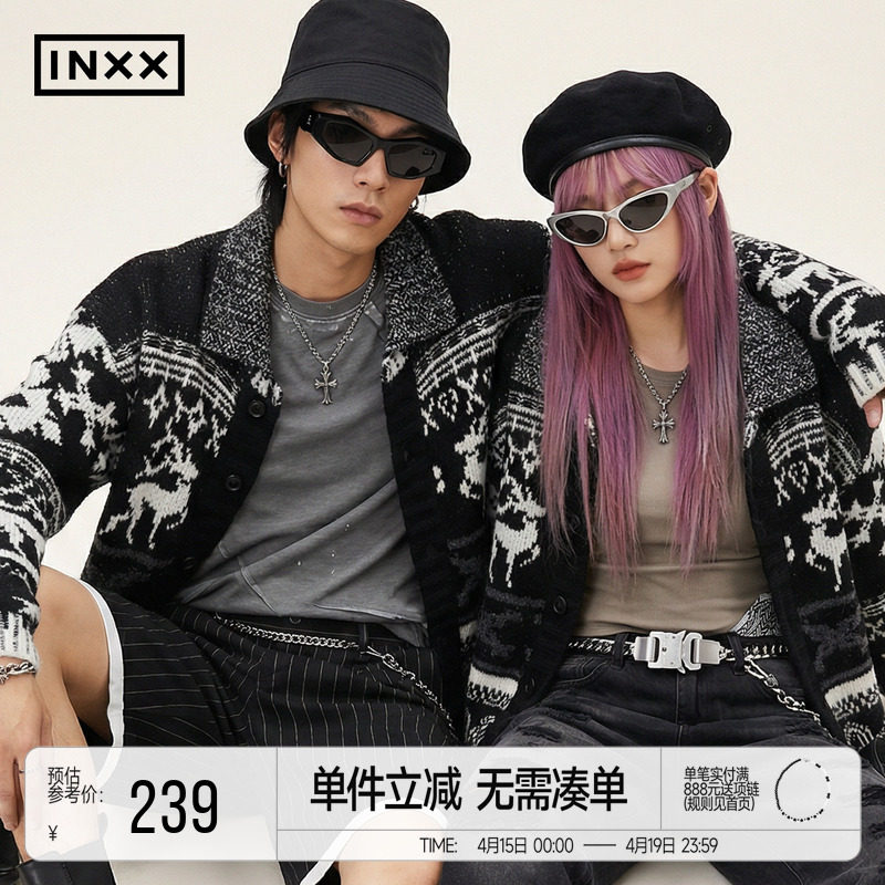 INXX明星同款 美式复古费尔岛毛衣开衫高领两穿舒适针织宽松情侣