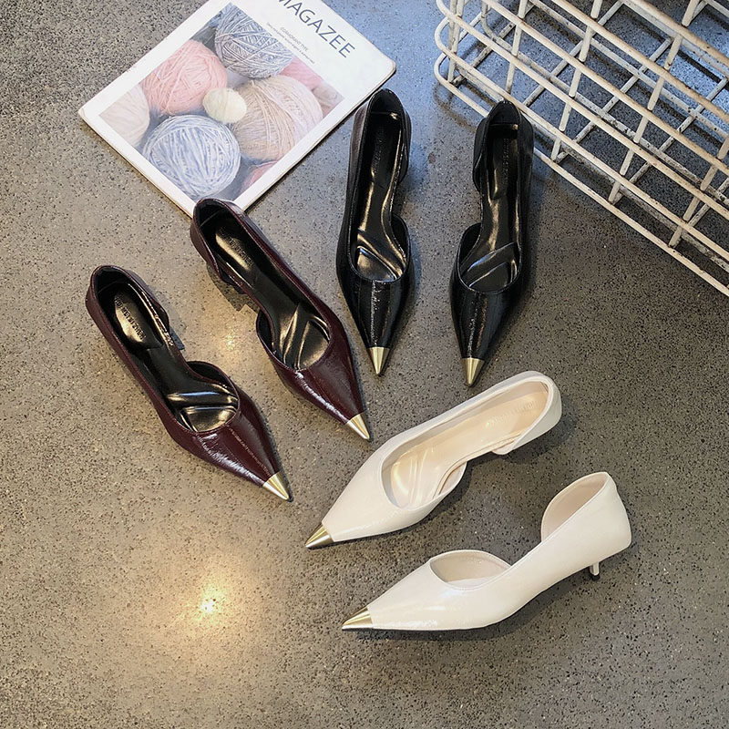 2025年秋季新款法式尖头金属bb扣浅口细跟高跟鞋女欧美复古风单鞋