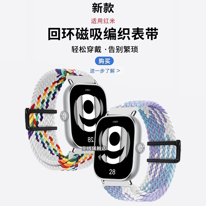 适用红米手环3手表带编织磁吸新款小米redmi智能运动2手腕带女生配件尼龙夏天表链二三代非原装夏季女士表带