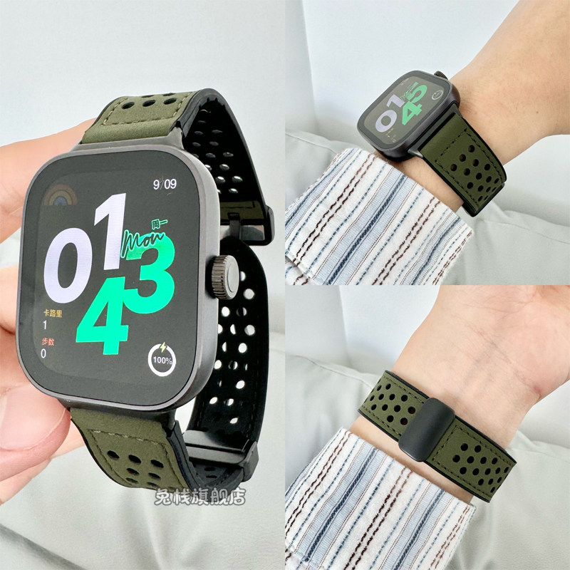 适用小米redmiwatch4/3/2红米手表4表带手链真皮硅胶磁吸扣男女夏天透气洞洞智能运动原装watch4/3/2手环腕带