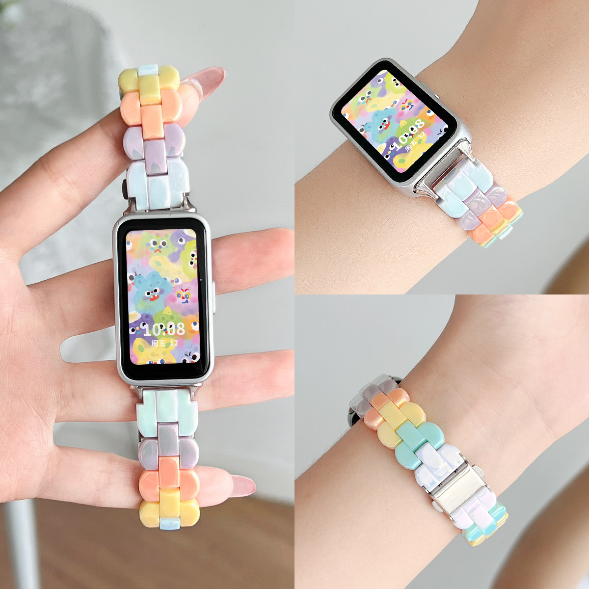 适用红米手环3手表带夏天新款创意树脂小米redmi2智能运动手腕带女生配件三亚克力二代非原装保护壳女士硅胶