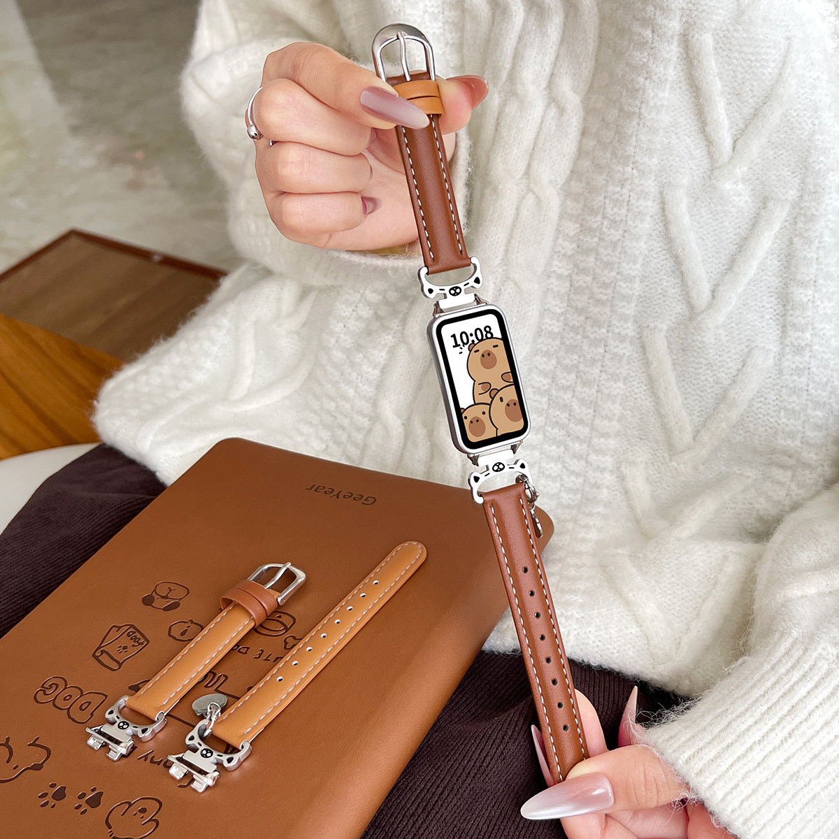 【卡皮巴拉】适用于红米手环3手表带真皮质小米red mi智能运动手环2手腕带女生配件夏天小众表链二三代非原装