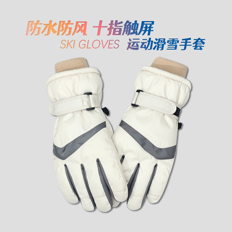 滑雪手套女士冬季可触屏防寒风加绒加厚保暖骑行电动车户外手套男