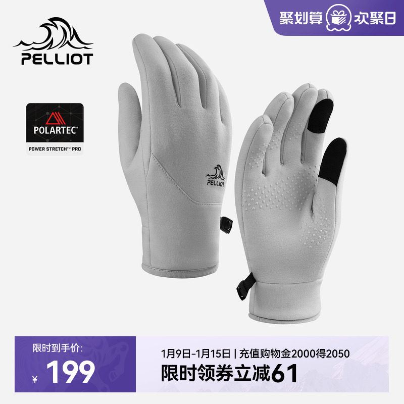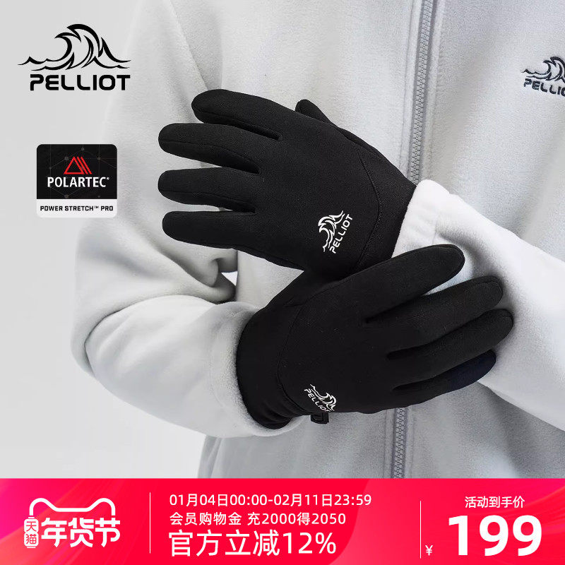 伯希和户外手套男冬季Polartec抓绒登山保暖徒步防风跑步骑行装备