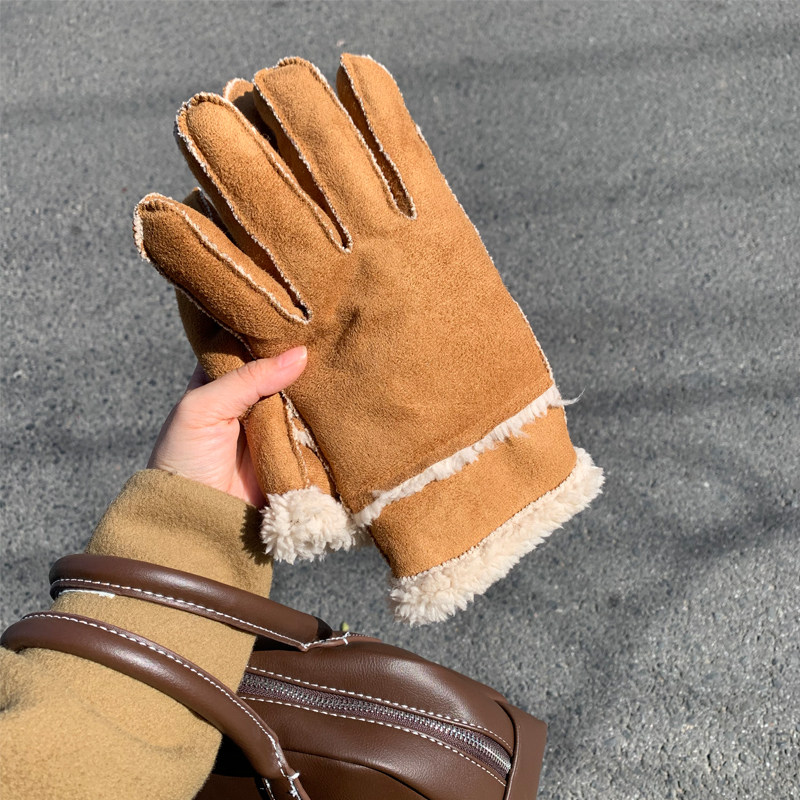 手套女冬季加绒防寒防风麂皮绒保暖手套骑行骑车户外手套男电动车