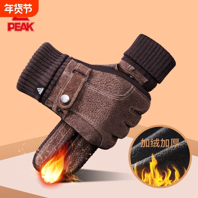 匹克冬季户外手套男骑行防风保暖加厚防寒加绒触屏电动车猪皮御寒