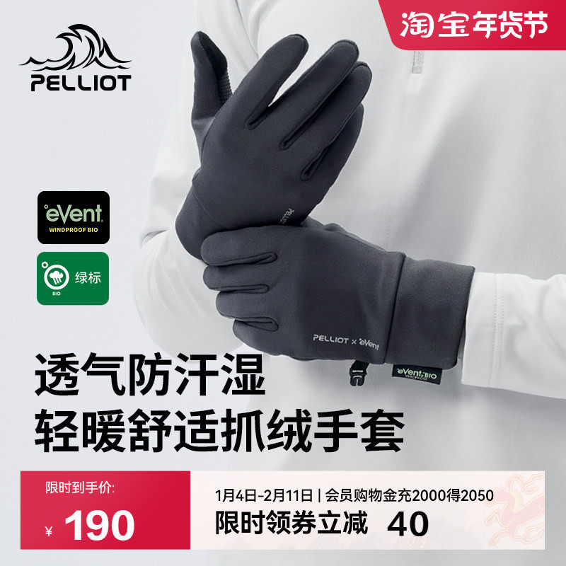 【P系列】伯希和户外手套男eVent防水透湿可触屏登山防风抓绒保暖