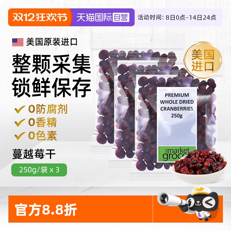 【自营】Themarketgrocer美国进口蔓越莓果干烘焙零食即食独立3包