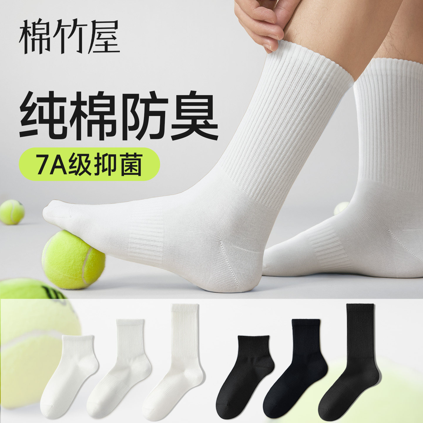 白色袜子男款诸暨防脚气防臭7a抗菌纯棉中筒男士运动2026新款女款