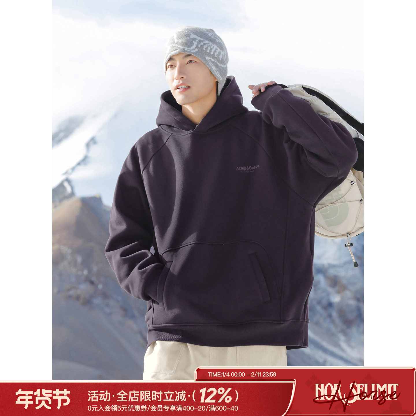 - 加绒套头卫衣男青年