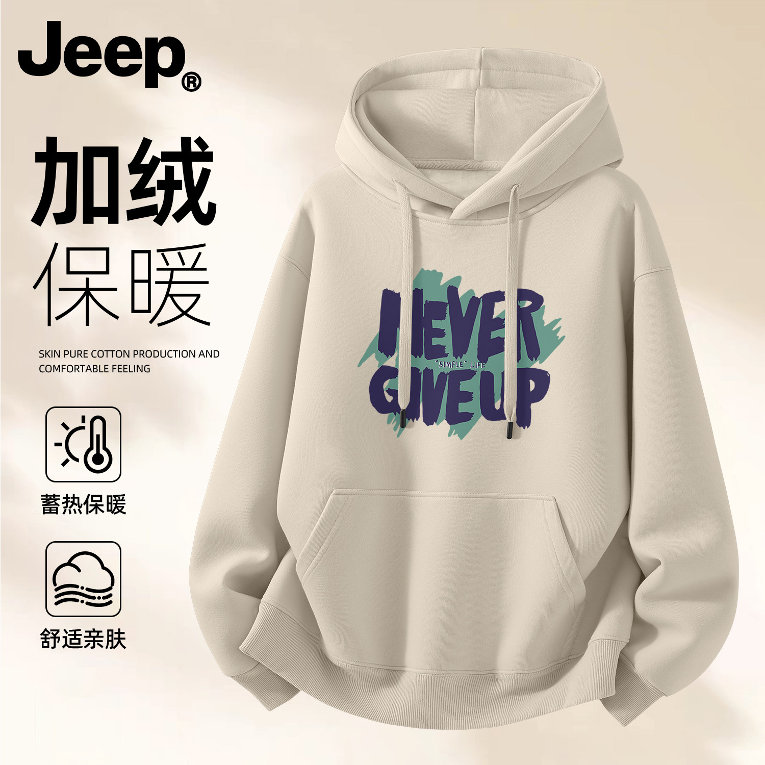 Jeep吉普男女加绒连帽卫衣加厚秋冬新款上衣男生潮流高级美式衣服