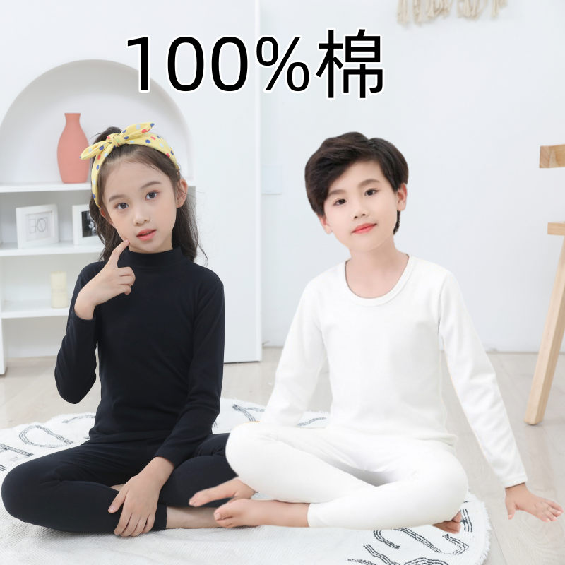 全棉无印纯白色男童女童中大童纯棉春秋居家秋衣秋裤黑色内衣套装
