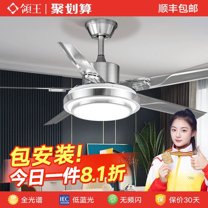 领王吊扇灯不锈钢大风力风扇灯一卧室客厅餐厅带电扇的吊灯体家用