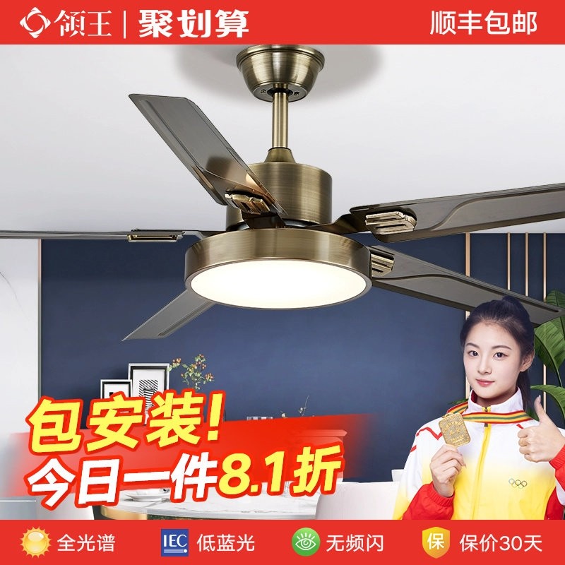领王吊扇灯餐厅风扇吊灯52寸咖啡的扇灯厅客厅卧室欧式带电扇一体
