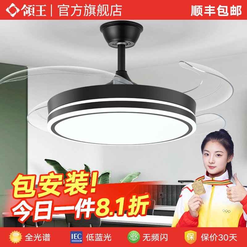 领王隐形风扇灯吊扇灯客厅餐厅卧灯中山灯具室家用带电扇一体的吊