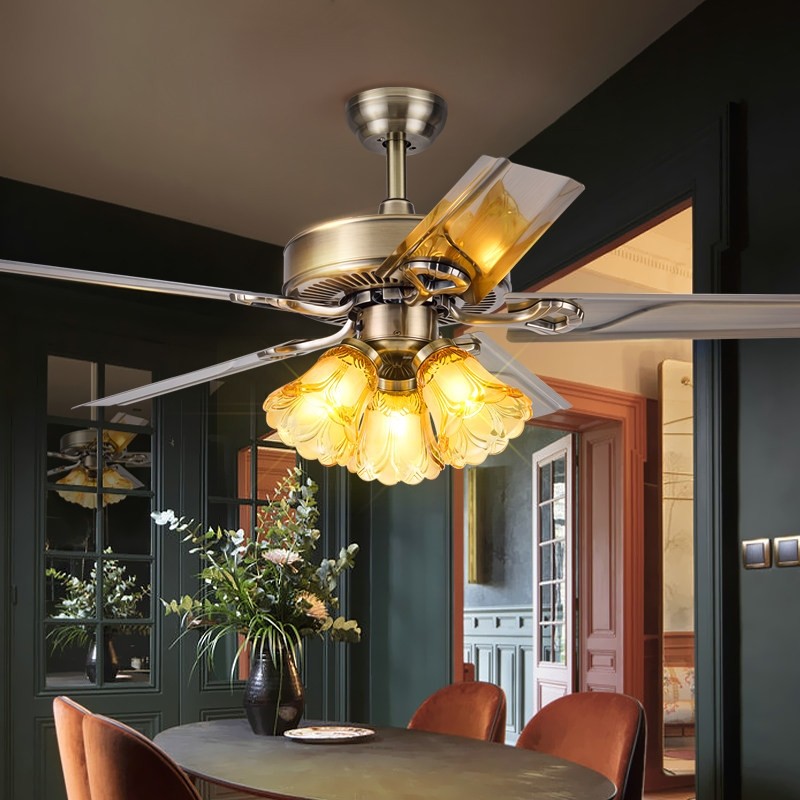 领王吊扇灯餐厅风扇吊灯52寸咖啡扇一体的扇灯厅客厅卧室欧式带电