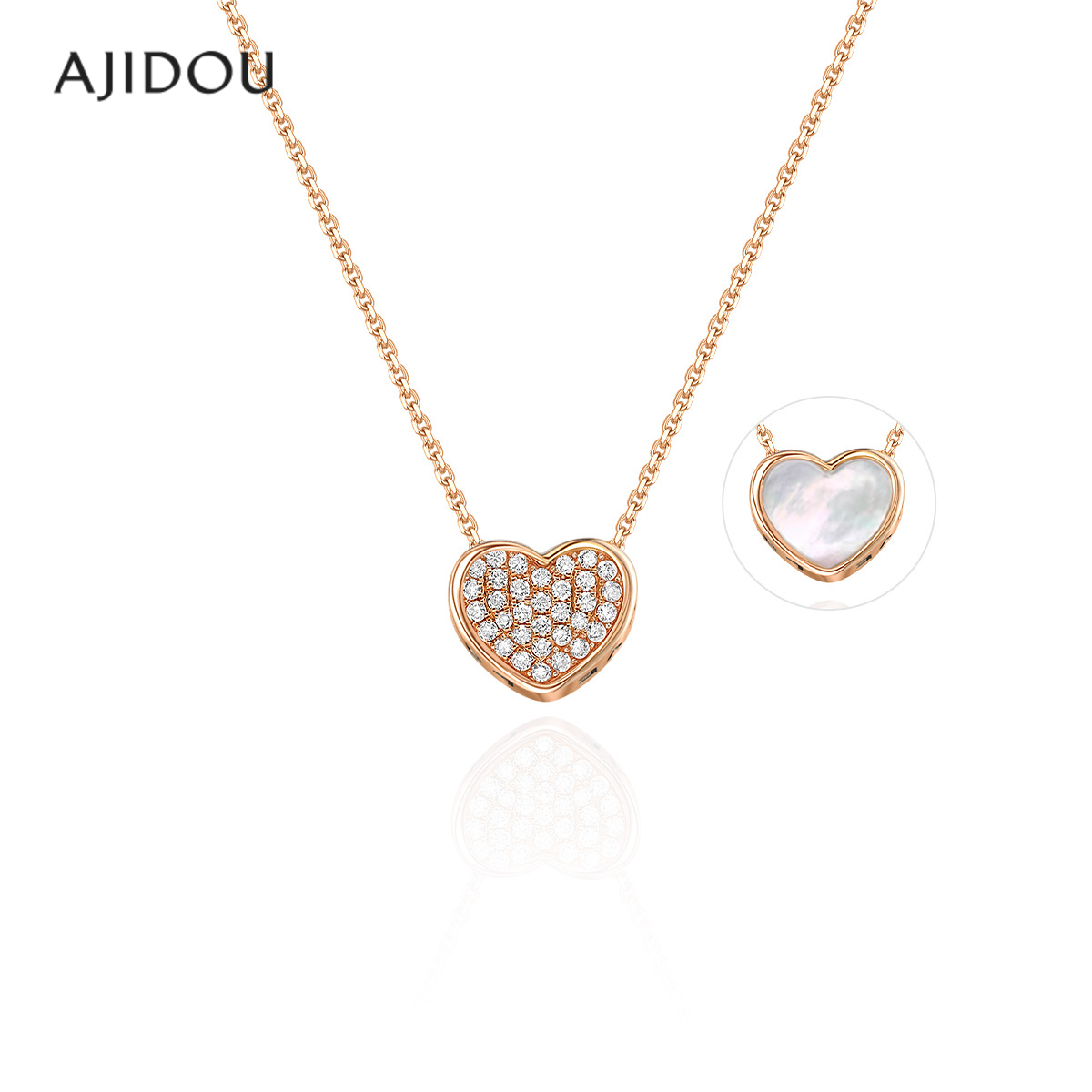 AJIDOU阿吉豆项链女款玫瑰金爱心双面贝壳锆石吊坠轻奢小众锁骨链