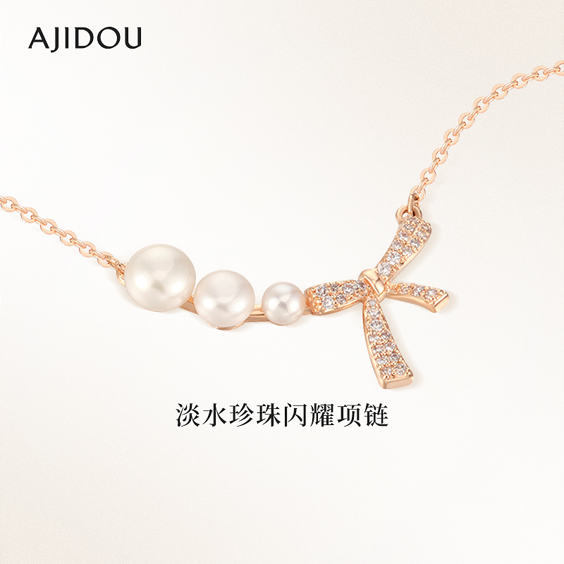 阿吉豆项链女款珍珠项链锆石吊坠甜美蝴蝶结配饰玫瑰金珍珠锁骨链
