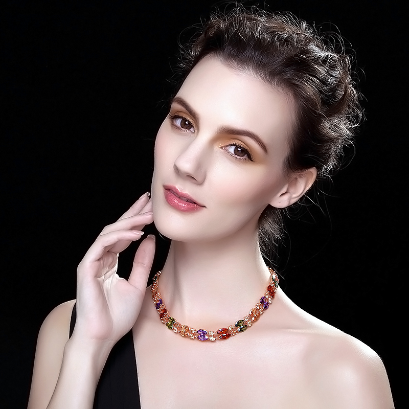 彩色锆石项链女款锁骨链颈链玫瑰彩金高级感轻奢新款搭配礼服配饰
